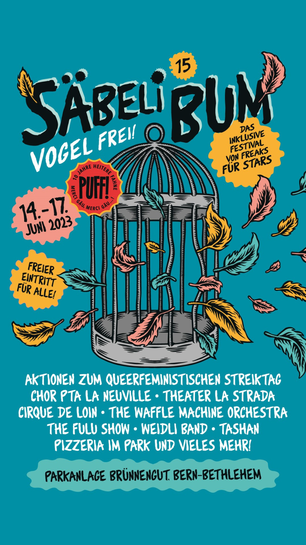Vom Mittwoch 14. bis Samstag 17. Juni bespielen wir die Parkanlage Brünnengut in Bern Bethlehem mit Musik, Theater, beflügelnden Begegnungen, Aktionen zum feministischen Streik sowie jeden Tag leckere Getränke von der Bar und der legendären Heitere Pizza im Park. Vier Tage für Menschen mit und ohne Behinderungen. Ein Fest von Freaks für Stars! Passend zu unserem Jahresthema laden wir zum Experimentieren mit unseren eigenen Vögeln ein und sagen – Vogel frei!